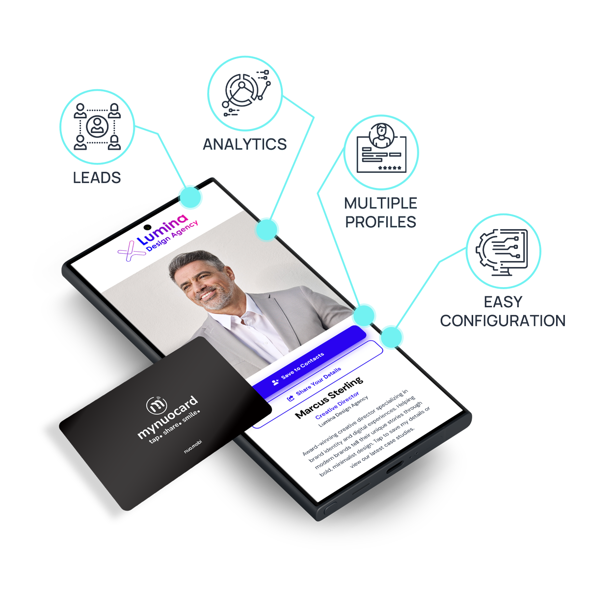 - Συγκεντρώστε Leads καθώς ο χρήστης που κάνει tap την κάρτα σας μπορεί να σας επικοινωνήσει και τα δικά του στοιχεία